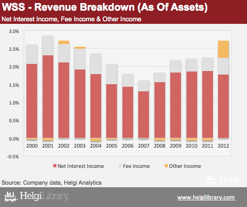 Interest rate income still dominates the revenue side of the bank. With the exception of 2012, revenues formed 80-90% of total banking income in the last five years