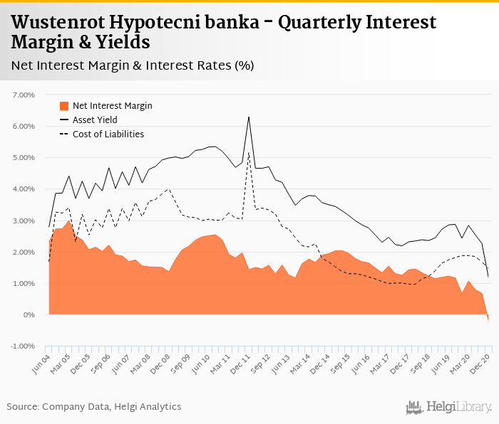 Wustenrot Hypotecni banka's net interest margin amounted to -0.207% in the fourth quarter of 2020, down from 0.671% when compared to the previous quarter.