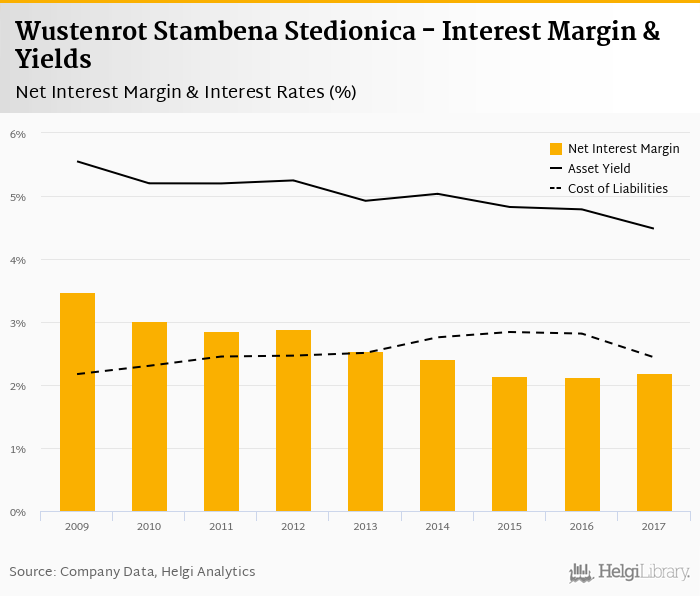 Wustenrot Stambena Stedionica's net interest margin amounted to 2.18% in 2017, up from 2.13% compared to the previous year.
