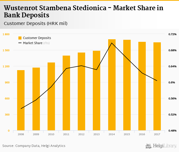 Wustenrot Stambena Stedionica's customer deposits reached HRK 1,648 mil in 2017, down 0.654% compared to the previous year.