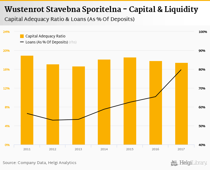 Wustenrot Stavebna Sporitelna's capital adequacy ratio reached 17.4% at the end of 2017, down from 17.8% compared to the previous year. Historically, the bank’s capital ratio hit an all time high of 18.9% in 2011 and an all time low of 16.7% in 2013.