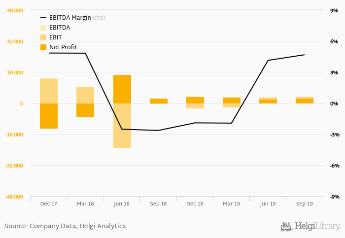 On the operating level, EBITDA reached CNY 3,567 mil, up 49% compared to the previous year. Over the last five years, company's EBITDA has risen 0% a year on average.