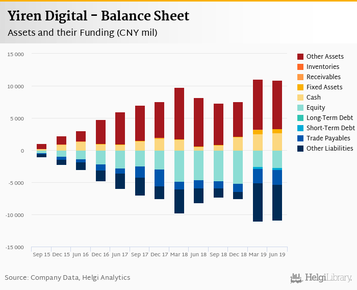 By contrast, total debt reached CNY 341 mil at the year-end, or 3.13% of total assets, while the firm's equity amounted to CNY 2,681 mil. As a result, net debt stood at CNY -2,365 mil at the end of 2Q2019 and accounted for -88.2% of equity.