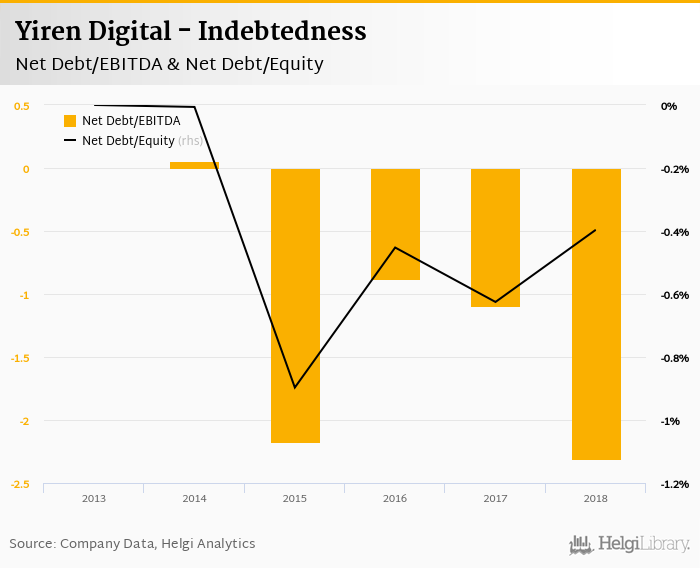 Yiren Digital's net debt stood at CNY -2,029 mil and accounted for -0.396% of equity at the end of 2018. The ratio is up 0.229 pp compared to the previous year.