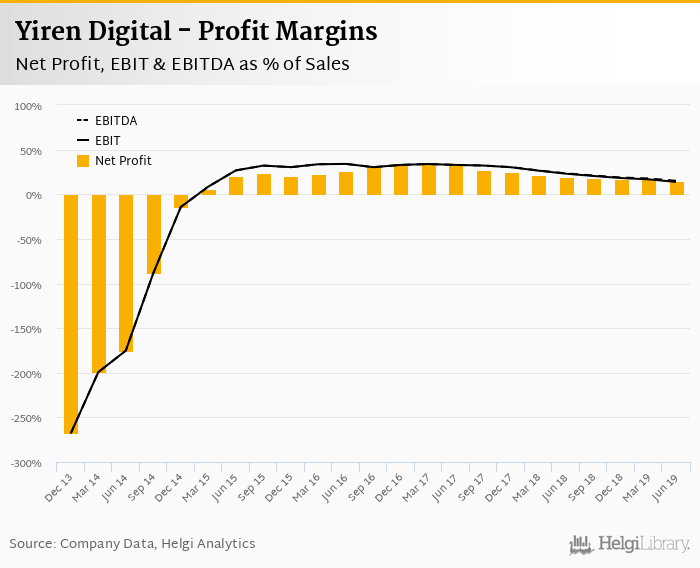 Yiren Digital made a net profit of CNY 154 mil with revenues of CNY 2,217 mil in 2Q2019, down by 24.5% and up by 45.9%, respectively, compared to the previous year.