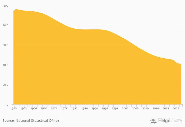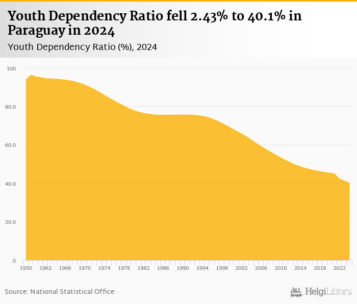 Youth dependency ratio fell 2.43% to 40.1% in Paraguay in 2024, according to the National Statistical Office.