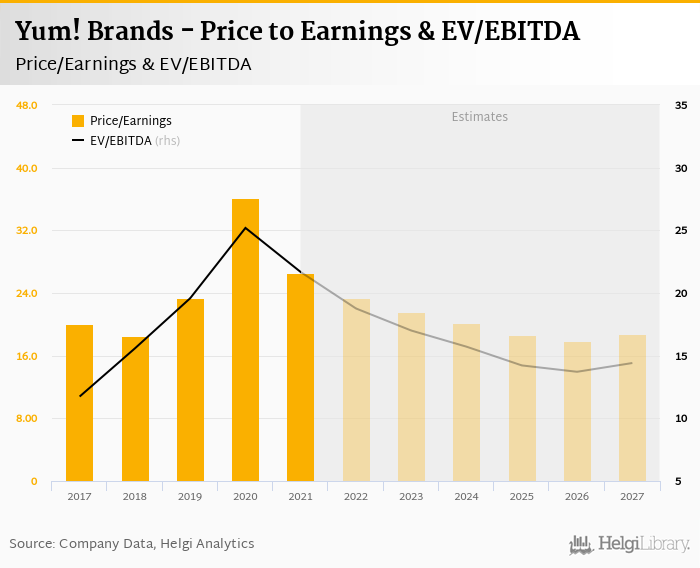 Yum! Brands stock traded at USD 138 per share at the end 2021 translating into a market capitalization of USD 40,131 mil.