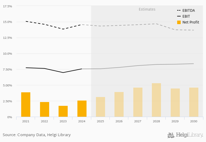 On the operating level, the EBITDA margin reached 14.5% and EBIT amounted to 7.55% of sales in 2024.