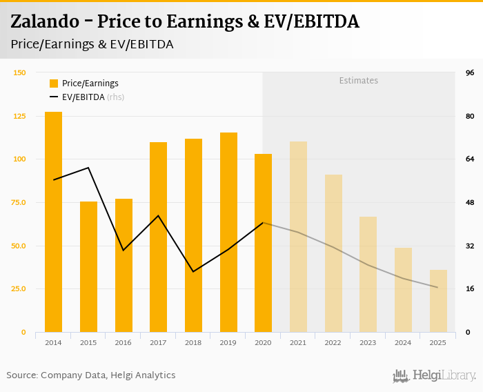 Zalando stock traded at EUR 91.1 per share at the end 2020 translating into a market capitalization of USD 28,445 mil.