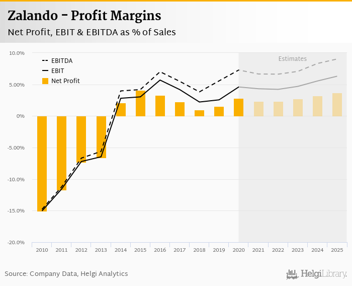 Zalando made a net profit of EUR 226 mil with revenues of EUR 7,982 mil in 2020, up by 127% and up by 23.1%, respectively, compared to the previous year.