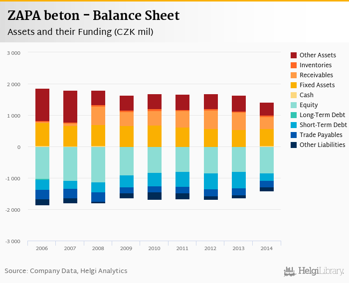 ZAPA beton's total assets reached CZK 1,409 mil at the end of 2014, down 13.5% compared to the previous year.