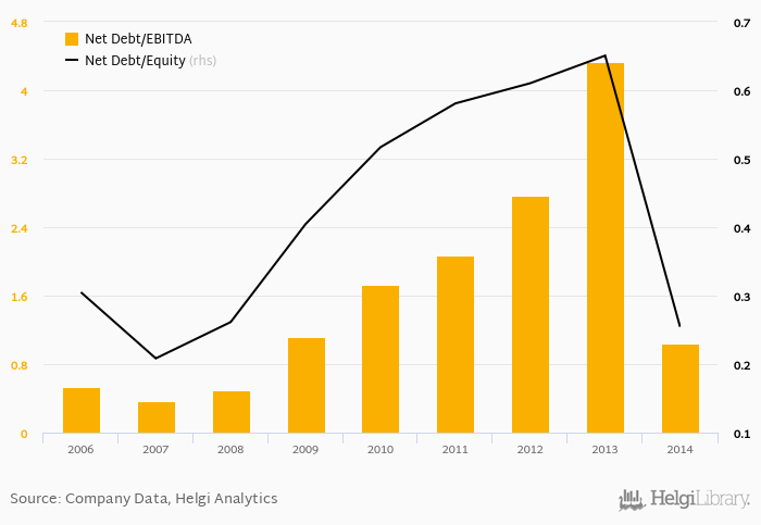 Historically, the firm’s net debt to equity reached a high of 0.651 in 2013 and a low of 0.208 in 2007 between 2006 and 2014. The average for the last five years was 0.523%.