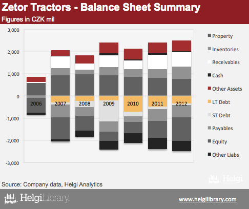 Zetor has achieved total sales of CZK 3.84 bil in 2012, 13% less than in 2007. Compared to the record year 2007 when more than 7,000 vehicles have been sold, "only" 4,929 tractors have been produced in 2012.