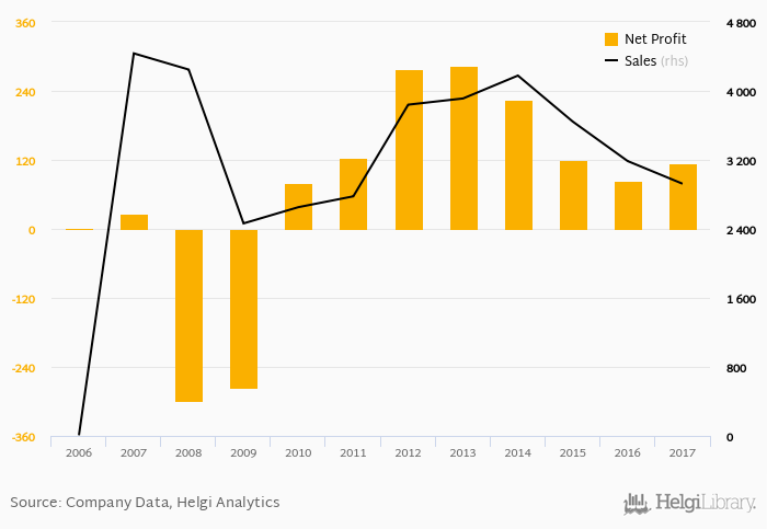Historically, between 2006 and 2017, the company’s net profit reached a high of CZK 284 mil in 2013 and a low of CZK -298 mil in 2008. Over the last decade the firm's net profit increased by an average of 15.4% a year.