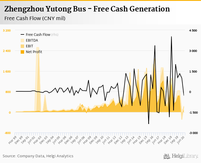 Zhengzhou Yutong Bus made a net profit of CNY 206 mil with revenues of CNY 4,804 mil in 2Q2020, down by 44.6% and down by 37.4%, respectively, compared to the previous year. This translates into a net margin of 4.30%.