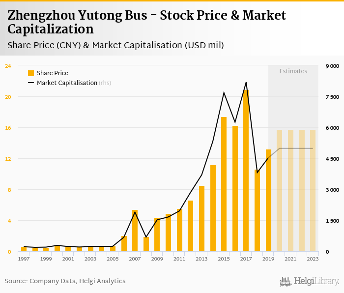 Zhengzhou Yutong Bus stock traded at CNY 13.2 per share at the end 2019 implying a market capitalization of USD 4,531 mil.