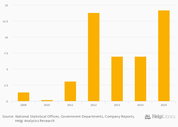 Zinc (mine) production rose 103% to 14.2 kt in Nigeria in 2015, according to the National Statistical Office.