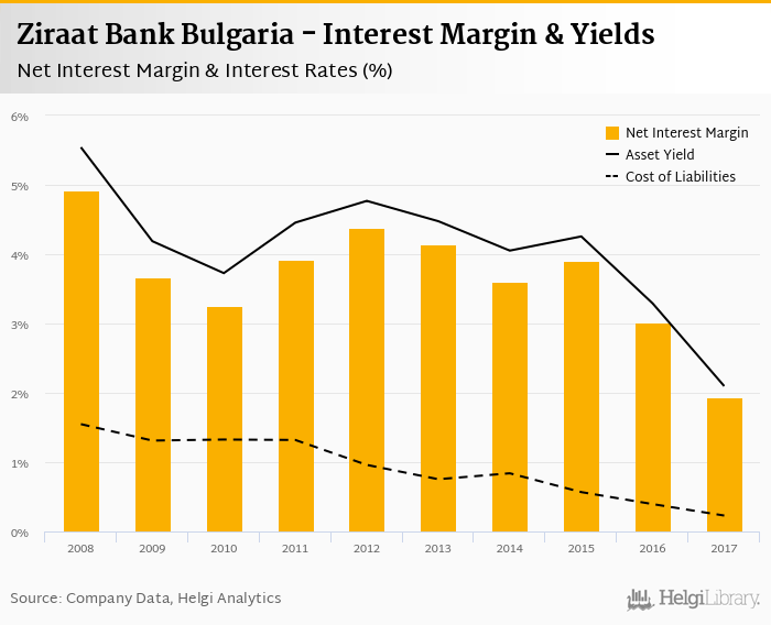 Ziraat Bank Bulgaria's net interest margin amounted to 1.93% in 2017, down from 3.02% compared to the previous year.