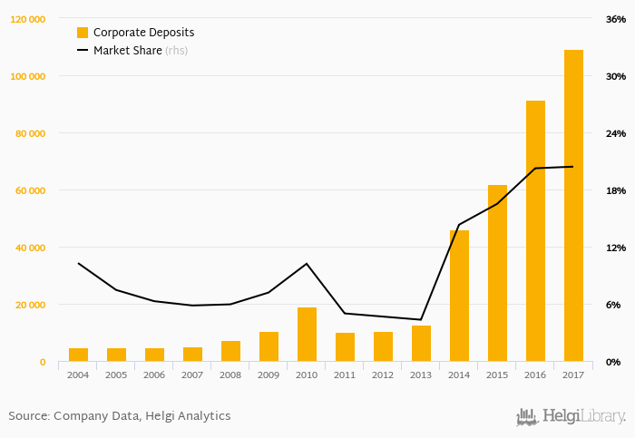Ziraat Bank's corporate deposits reached TRY 109,218 mil in 2017, up 19.4% compared to the previous year.