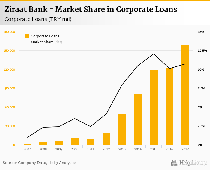 Ziraat Bank's corporate loans reached TRY 159,157 mil in 2017, up 29.6% compared to the previous year.