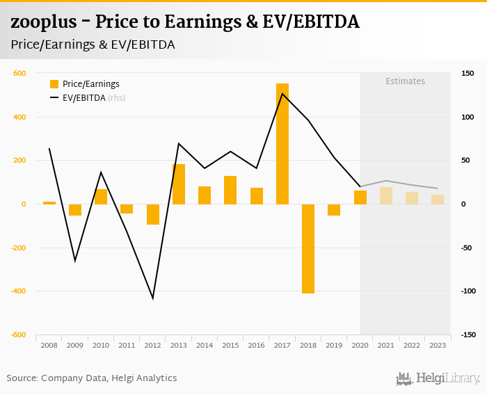 zooplus stock traded at EUR 170 per share at the end 2020 translating into a market capitalization of USD 1,484 mil.