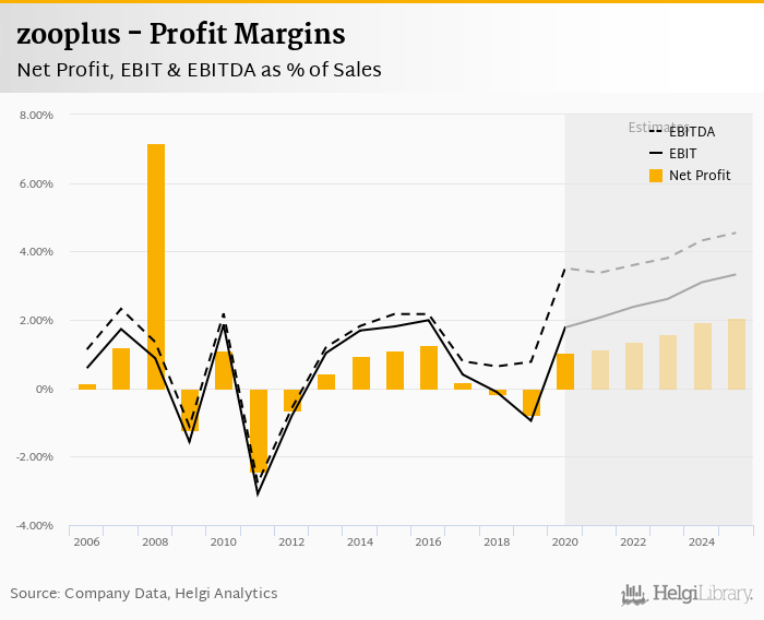 zooplus made a net profit of EUR 18.9 mil with revenues of EUR 1,802 mil in 2020, up by 257% and up by 18.2%, respectively, compared to the previous year.