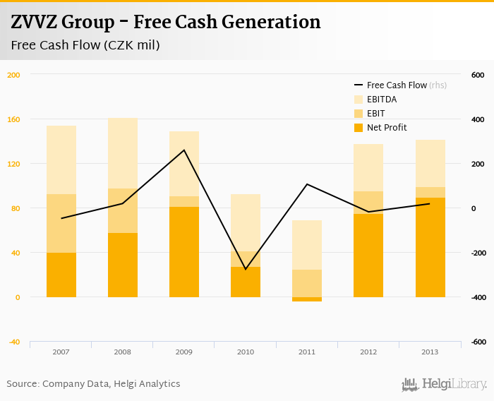 ZVVZ Group made a net profit of CZK 89.5 mil with revenues of CZK 2,264 mil in 2013, up by 19.8% and up by 28.5%, respectively, compared to the previous year. This translates into a net margin of 3.95%.