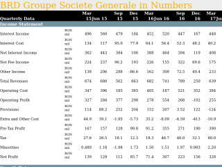 This Quarterly statistical dossier offers a summary of BRD Groupe Societe Generale's performance between Mar 15 and Dec 19 on an quarterly basis. The report can be downloaded as an excel file.
