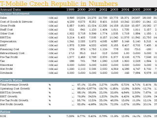 This Annual Statistical Dossier offers a comparison of 3 companies from Czech Mobile Phone Operators from 1999 to 2017 on an annual basis. The report can be downloaded as an Excel file.